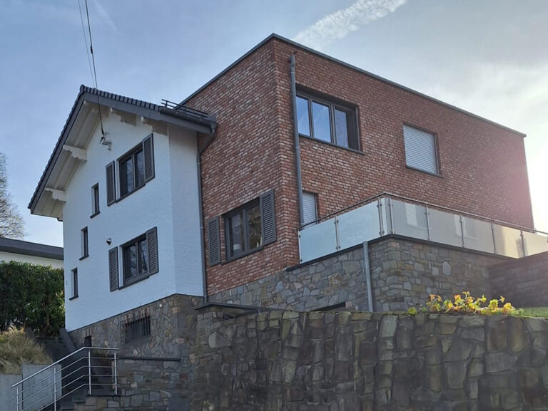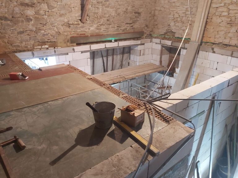 Bei dieser Kernsanierung haben wir das Gebäude entkernt, neue Fensteröffnungen geschaffen, das Mauerwerk im Inneren komplett erneuert und neue Decken eingezogen.